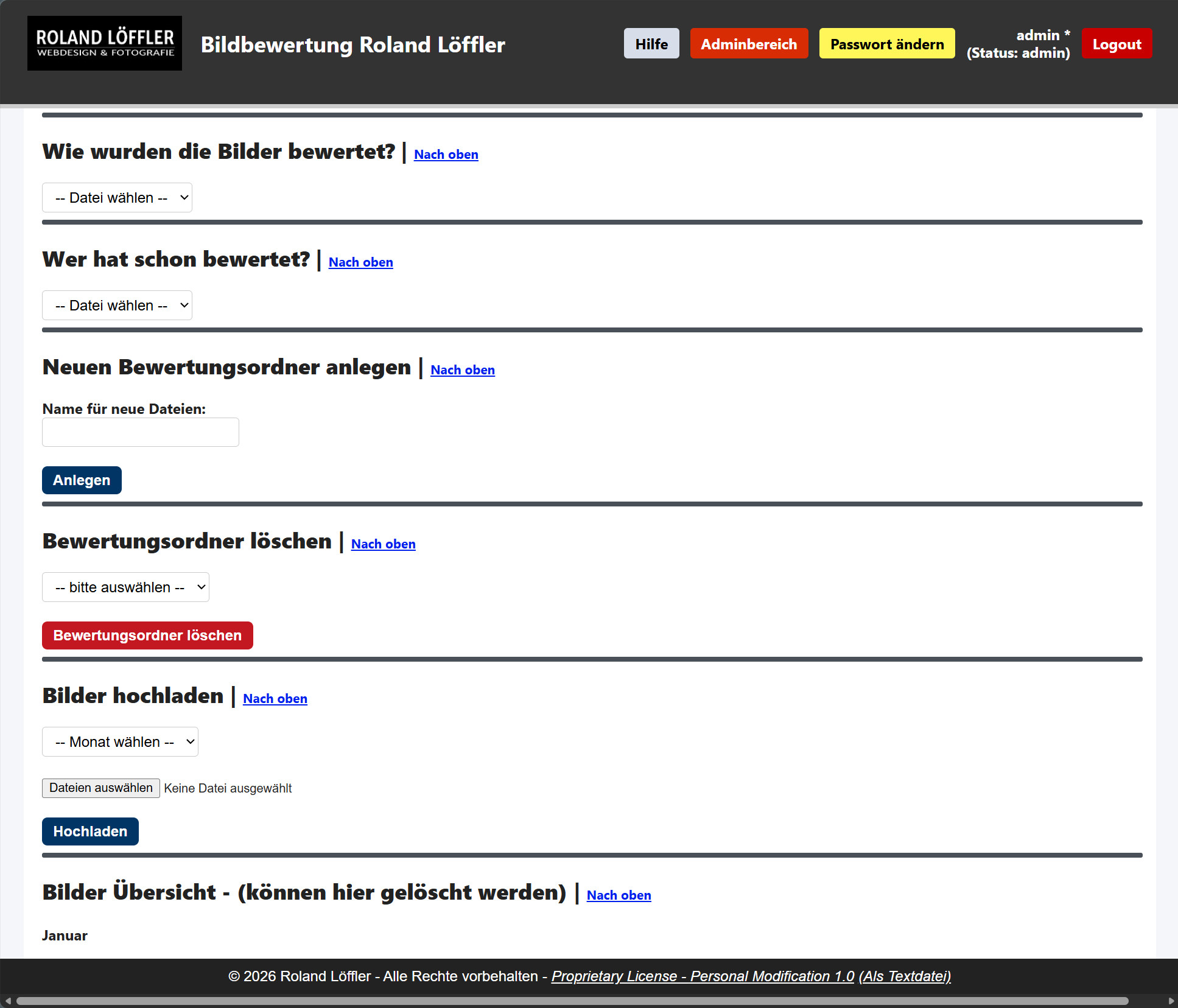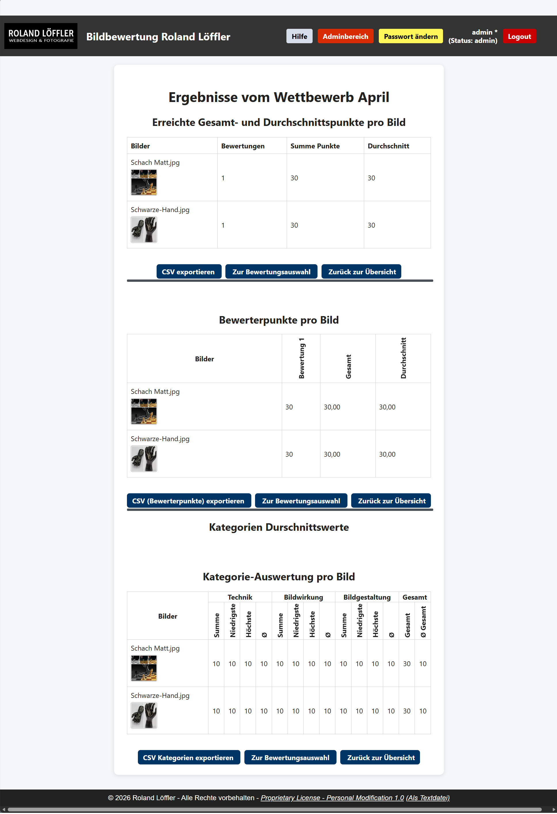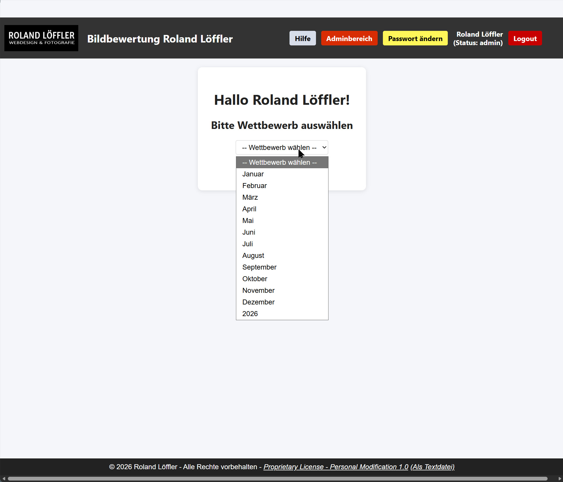 Nach Fertigstellung wird das Programm für Fotoclubs und Vereine erwerbbar sein. Derzeit befindet es sich noch in der finalen Entwicklungsphase, in der Funktionen optimiert, erweitert und umfassend getestet werden. Es wird noch etwas Zeit benötigen, bis die Version für den Erwerb bereitsteht – aber die Grundlage ist bereits vollständig funktionsfähig.