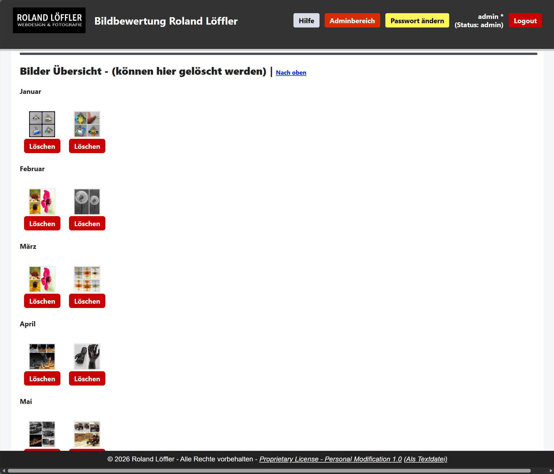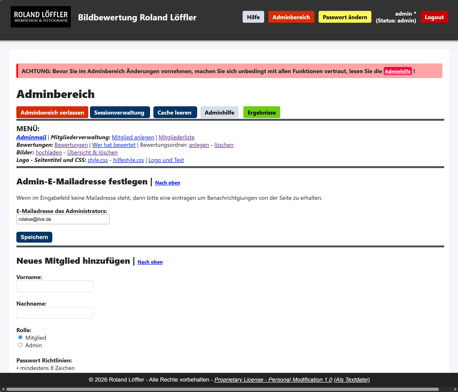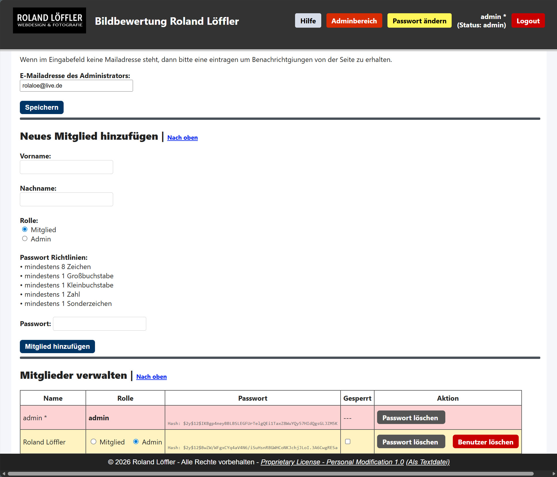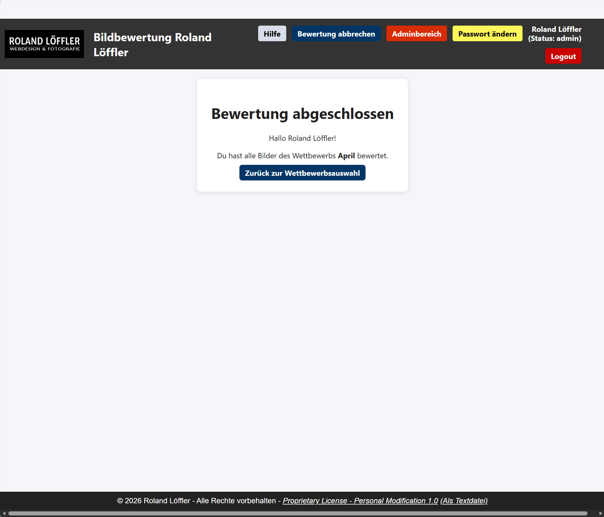 Nach Fertigstellung wird das Programm für Fotoclubs und Vereine erwerbbar sein. Derzeit befindet es sich noch in der finalen Entwicklungsphase, in der Funktionen optimiert, erweitert und umfassend getestet werden. Es wird noch etwas Zeit benötigen, bis die Version für den Erwerb bereitsteht – aber die Grundlage ist bereits vollständig funktionsfähig.