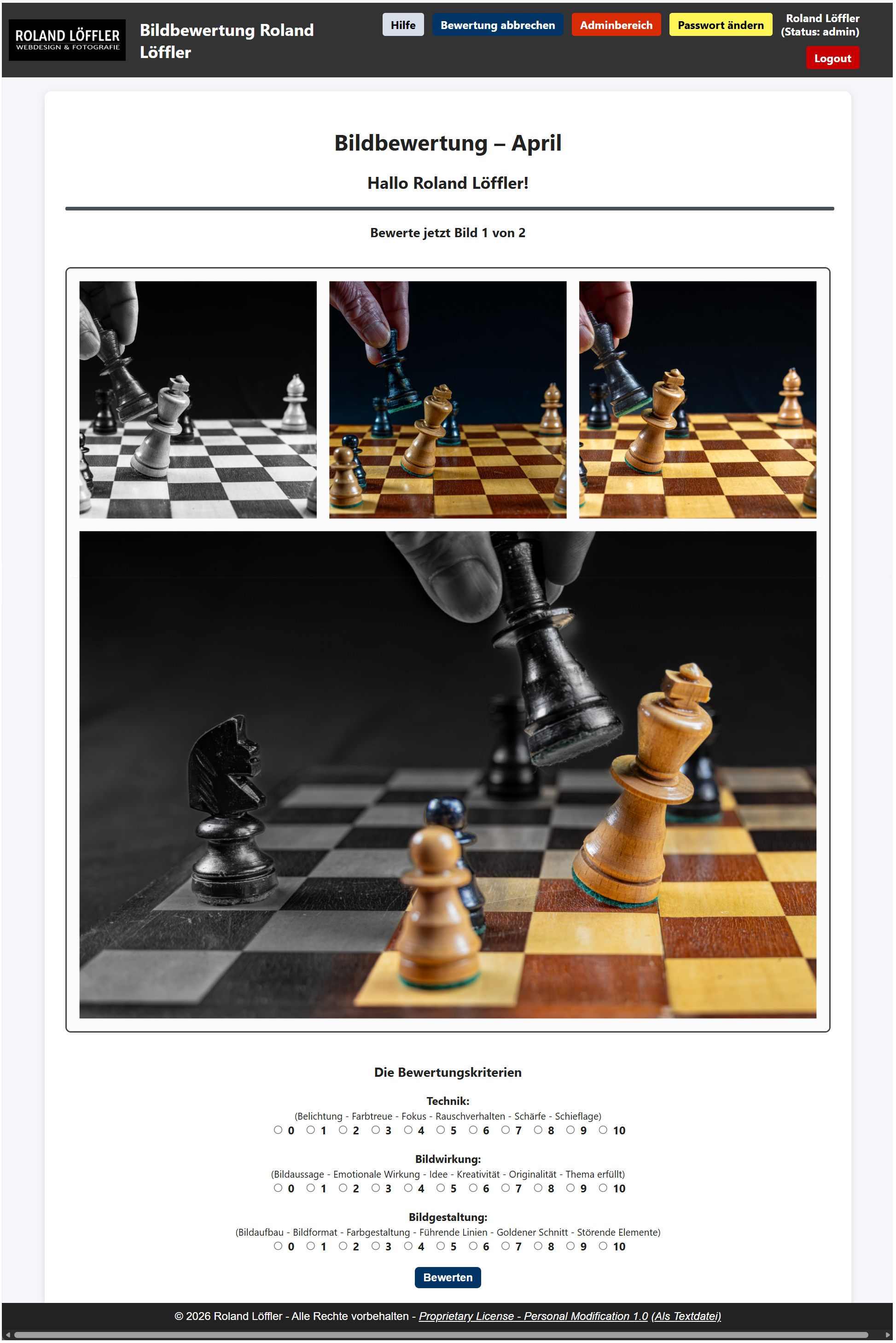 Das System ermöglicht es, Wettbewerbe digital abzuwickeln, Bilder zentral zu verwalten, Bewertungen strukturiert zu erfassen und Ergebnisse transparent auszuwerten. Es wurde mit dem Ziel entwickelt, die Abläufe in Fotoclubs zu vereinfachen, die Organisation zu entlasten und gleichzeitig eine professionelle, faire und nachvollziehbare Bewertung zu gewährleisten.
